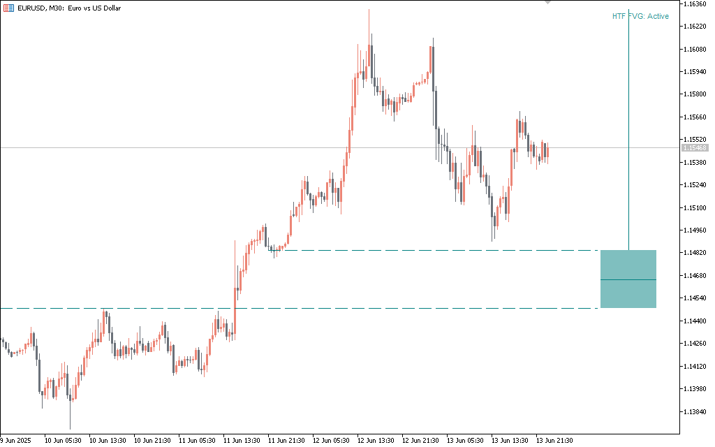 Whether you’re trading on M5 or H1, having a clear view of HTF FVGs gives context to market structure and can help fine-tune both entries and exits. This is particularly effective for those trading ICT-based concepts or supply-and-demand methodologies.