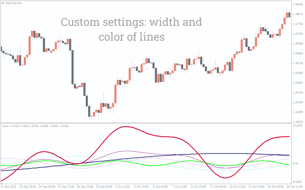 Unlike the traditional exponent, the Indicator fluctuates between + and – lines. However, it measures the trend’s unpredictability, persistence, and mean reversion.