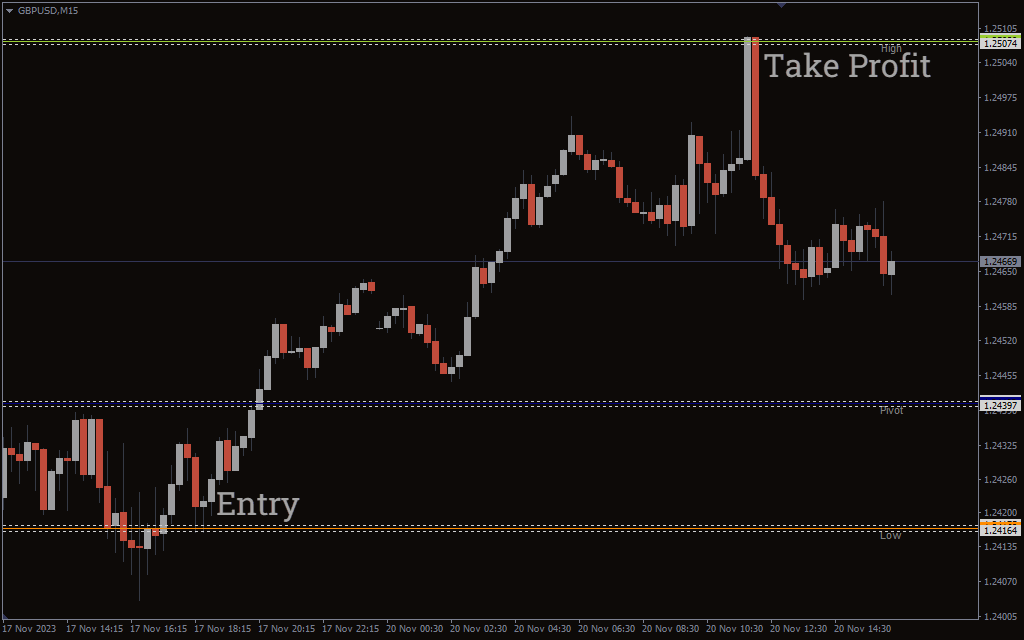 The I Pip Tom Demark Indicator for MT4 plots three lines on the chart. These are a support, resistance, and a pivot. You can use these lines to generate clear trade entry signals.