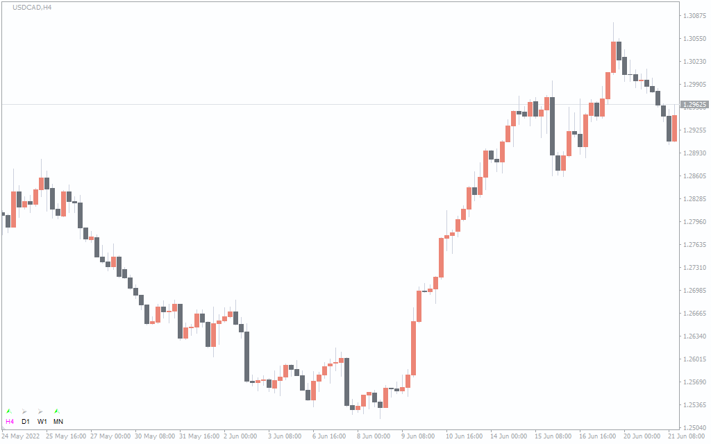 The above USD/CAD H4 chart shows the Indicator. To determine the BUY and SELL signals, traders need to look for the red and green arrows. The above illustrates that the USD/CAD monthly trend is upwards. So, traders can take positions accordingly. As the indicator works on longer timeframes, it’s best to identify the long-term trend with the Indicator.