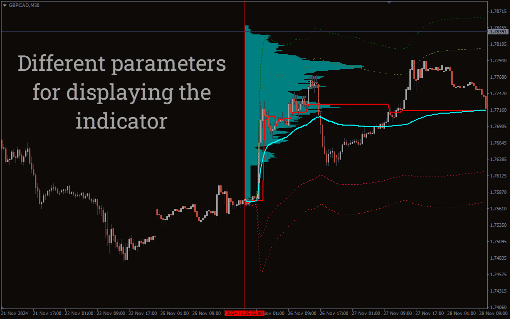 When the price moves beyond SD3, it often indicates extreme volatility, suggesting possible reversal points. Similarly, price interaction with VWAP reveals whether the market is trending above or below the average trading price. The histogram displays the volume distribution across price levels, highlighting areas of high interest. Combining these elements, the indicator provides a detailed picture of market behavior and aids in making informed trading decisions.