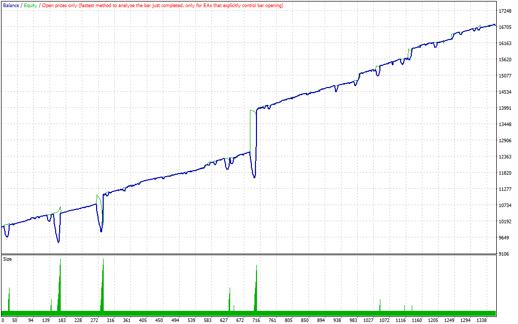 Results of tests showed a steadily rising equity curve with occasional drawdowns, the typical scenario for this type of tactic. EA is very active in EURUSD and performs best where spreads remain stable and liquidity is adequate.
