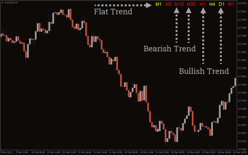 Best technical MTF trend indicator for MT4. Spot real-time bullish, bearish, and flat trend signals. Discover profitable Buy-Sell signals on forex /stock charts.