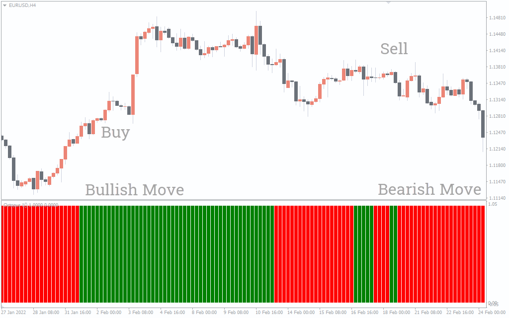 Octopus 1 indicator for MetaTrader is a custom trading indicator that was designed to follow the trend of the market. It paints histogram bars that depict different market sentiments; the green bar depicts a bullish move while the red bar shows a bearish move.