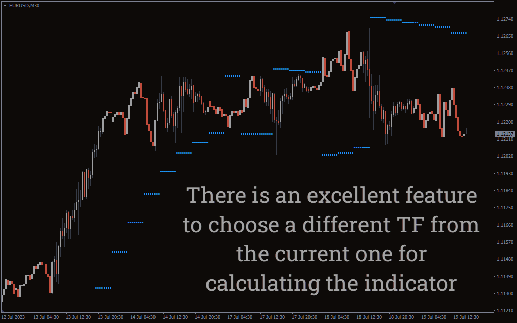 MT4The Parabolic SAR MTF indicator for MT4 displays the parabolic SAR on multiple timeframes.