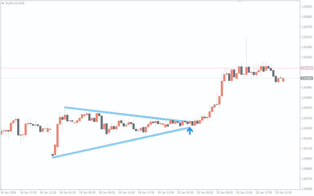 Trading signals are produced when price breaks out of the pennant structure. A bullish breakout is confirmed if price closes above the upper boundary of a bullish pennant, while a bearish signal occurs when price breaks below the lower boundary of a bearish pennant. In practice, I find that these breakout signals work better if they align with the higher-timeframe trend and are supported by additional volume or momentum confirmation. The arrows of the indicator make it easier to find actionable breakout areas without inundating the chart.