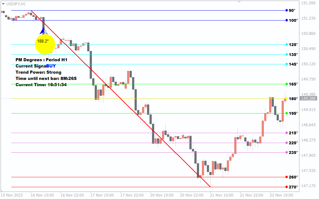 In summary, the price movement degrees indicator for MT4 helps forex traders to identify the trend direction and strength based on the angle of the price movement.