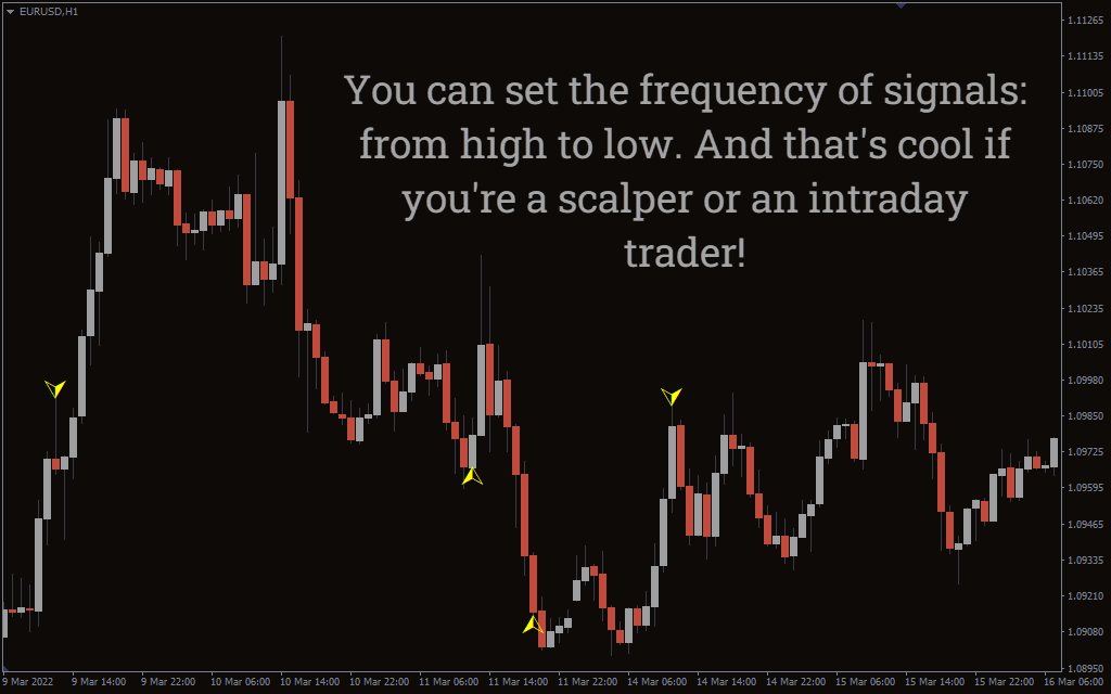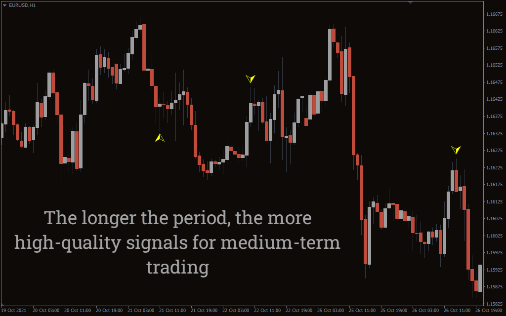 Despite the simple demonstration of trend signals, Indicator considers multiple technical factors to maintain its signal accuracy. In the background, it applies CCI, RSI, ATR, Bollinger Bands, and Moving Averages for examining the trend reversal zones.