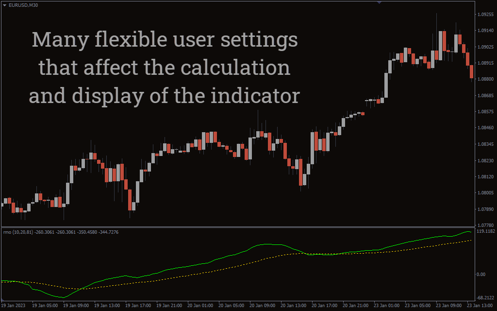 The Rahul Mohindar Oscillator (RMO) indicator for MetaTrader 4, otherwise known as the RMO, is a trend-following trading tool that identifies the primary trend direction of the market. Besides, it is also a suitable forex trading indicator for identifying potential trend reversal zones in the market.