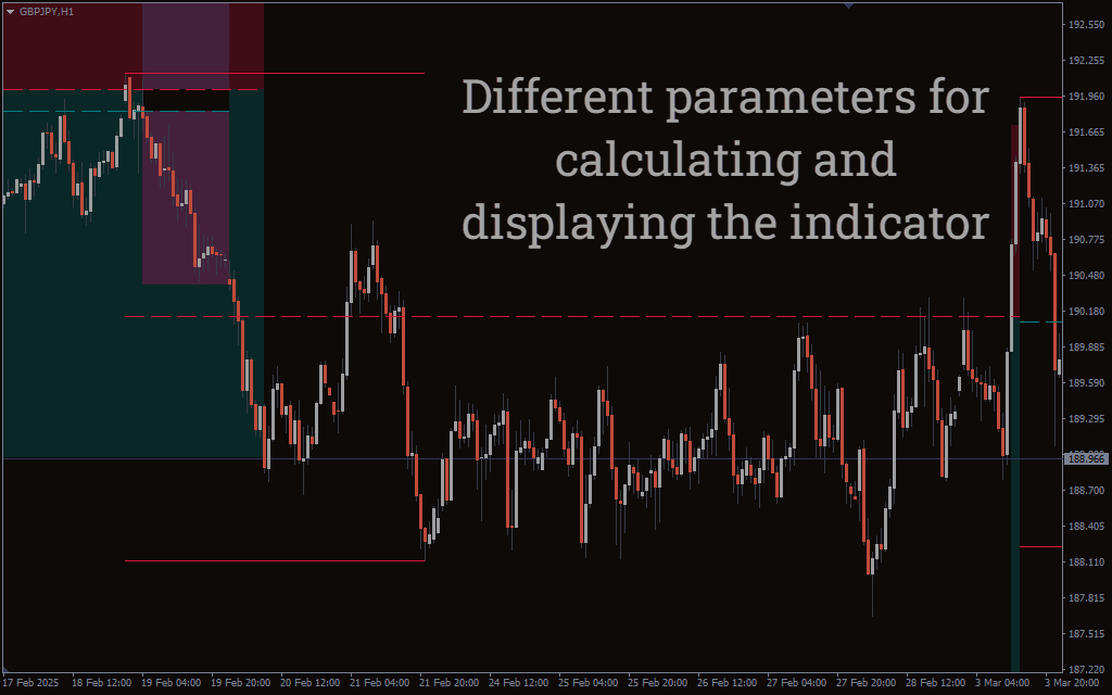 The indicator generates potential trading zones by analyzing historical swing points and projecting average price ranges where retests are most likely to occur. Once a range is established, the indicator defines its midpoint, upper, and lower bounds. If price interacts with these bounds and respects the range behavior, it plots a trade zone along with corresponding take profit and stop loss levels. The bullish range is typically highlighted in teal, while bearish ranges appear in crimson. These trade zones act as guides for entering long or short positions based on the market’s tendency to revisit average price levels.