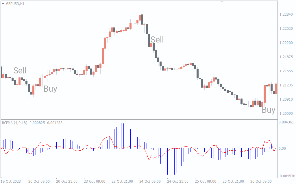 The RCF MA indicator for MT4 removes the lag associated with regular moving averages and provides the results as a histogram. The indicator is similar to the classic MACD forex trading indicator, but the underlying calculations differ. However, forex traders can trade this using similar trading strategy.