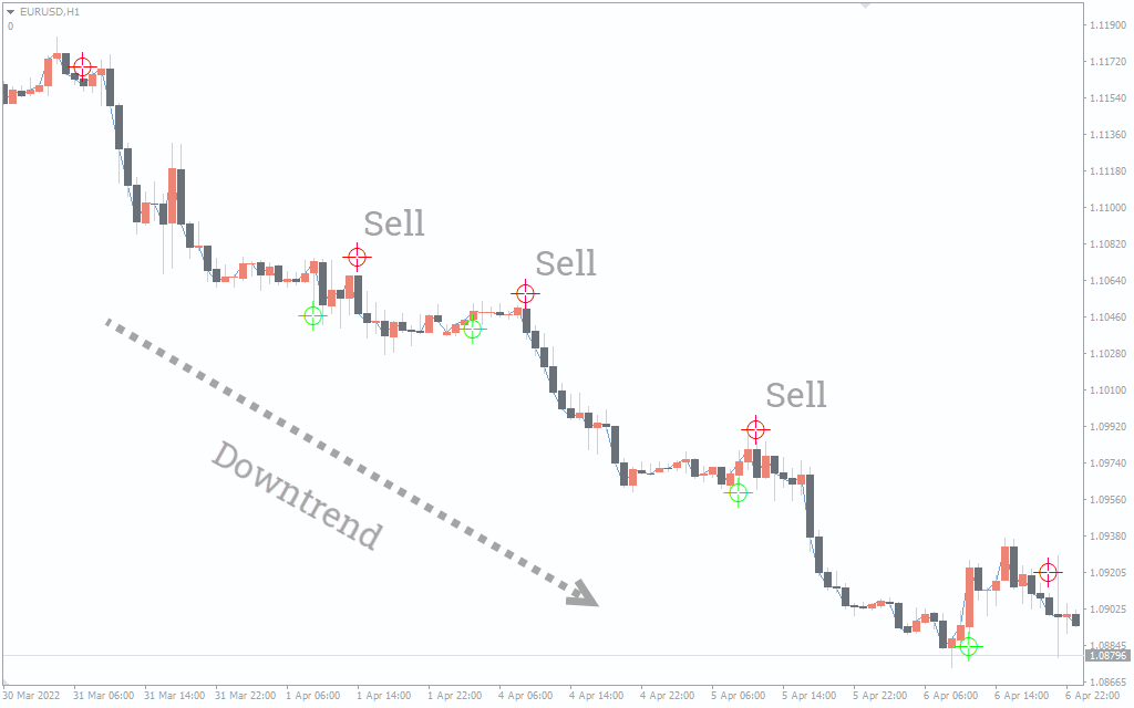 SELL Signal: Similarly, ensure that the trend is bearish. Wait for the indicator to paint a bearish reversal signal (colored in RED) before opening a SELL/SHORT position.