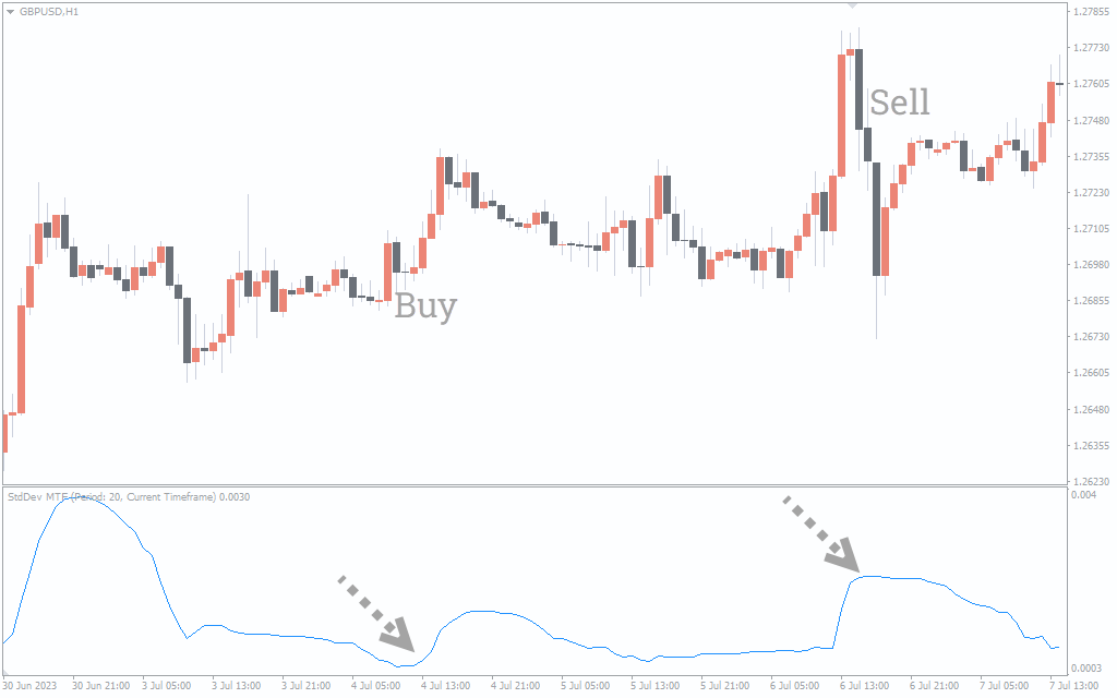 The StdDev MTF for MT4 has different utilities. You can use it as a trend filter or find reversals or breakouts. The success probability depends on many factors. Hence, backtesting is important.