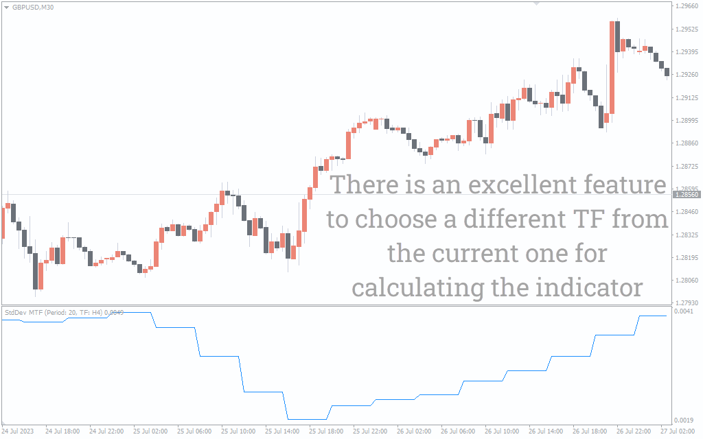 MT4Also Available for MT5The StdDev MTF plots histogram bars to identify the direction of the trend.
