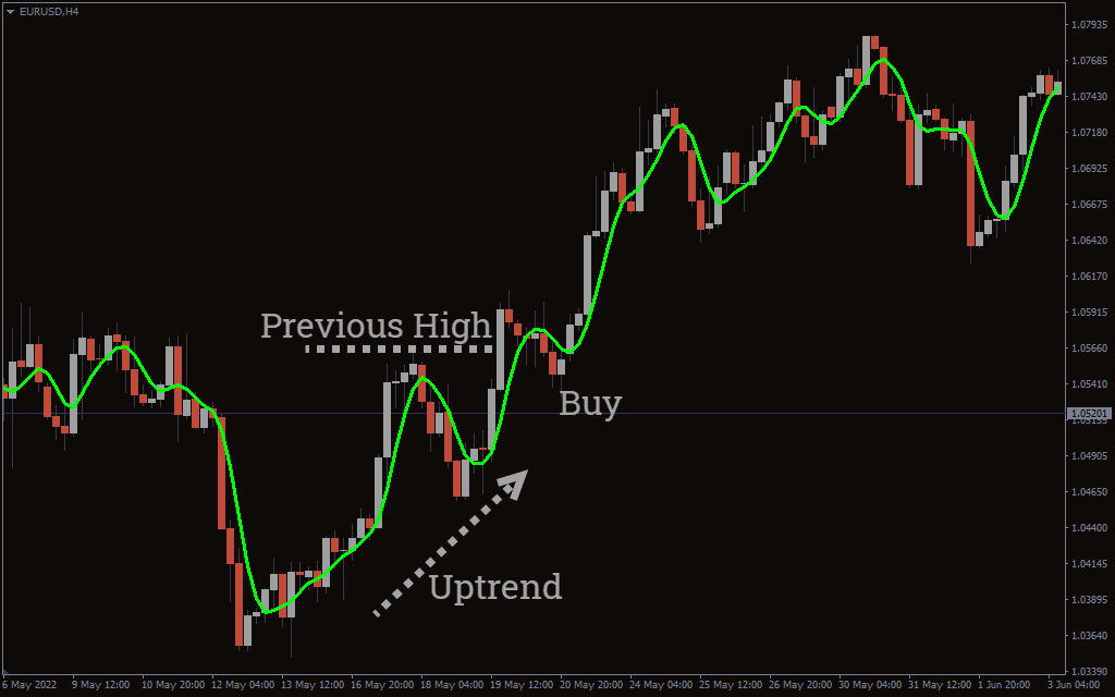 BUY Signal: Firstly, wait for the market to start printing higher highs and higher lows (bullish trend). Now, wait for a bearish retracement and then open a BUY/LONG position after the price closes above the Super Smoother indicator.