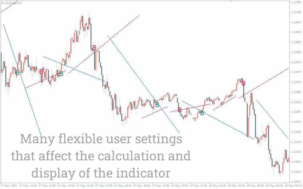 The indicator automatically plots trendlines based on historical swing points using a user-defined lookback window. Uptrend lines are displayed in teal, connecting higher lows, while downtrend lines appear in crimson, connecting lower highs. When price interacts with these trendlines and eventually breaks them, the tool highlights this area with extended lines, making breakout zones easier to spot. This visual cue allows traders to prepare for entries, exits, or confirmation of a trend reversal. Unlike static trendlines, these are dynamic and adapt to the chart structure, providing a consistent analytical edge.