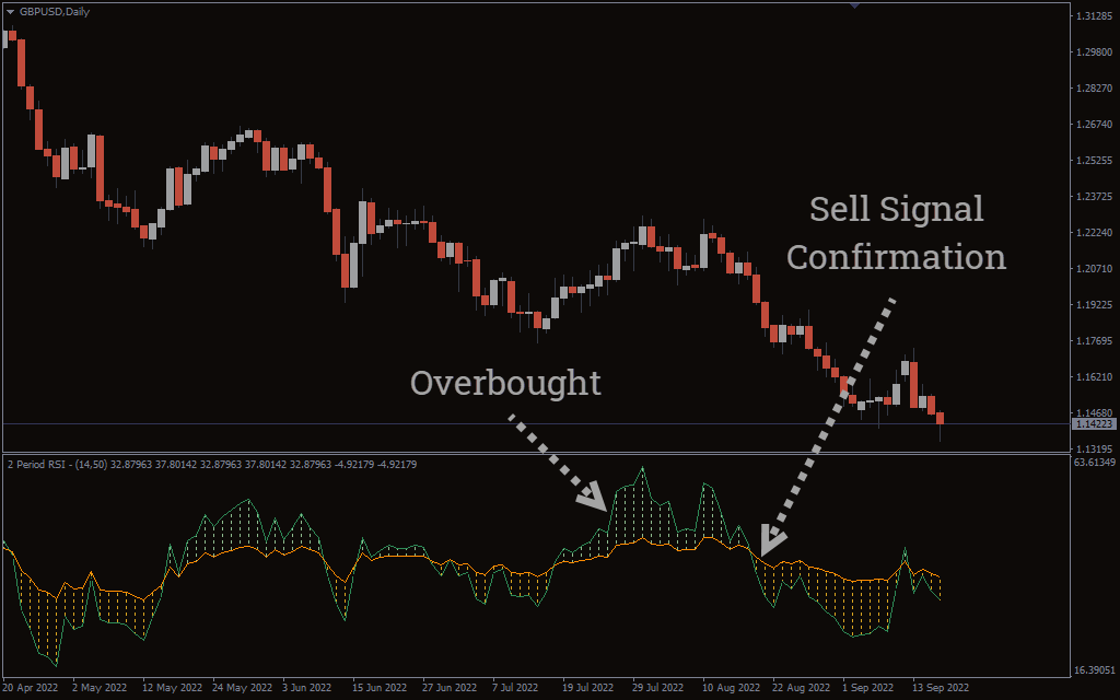 The two-period RSI is an indicator that combines two RSI using two different periods. You only need to wait for a crossover between the long RSI to enter a buy and sell signal.