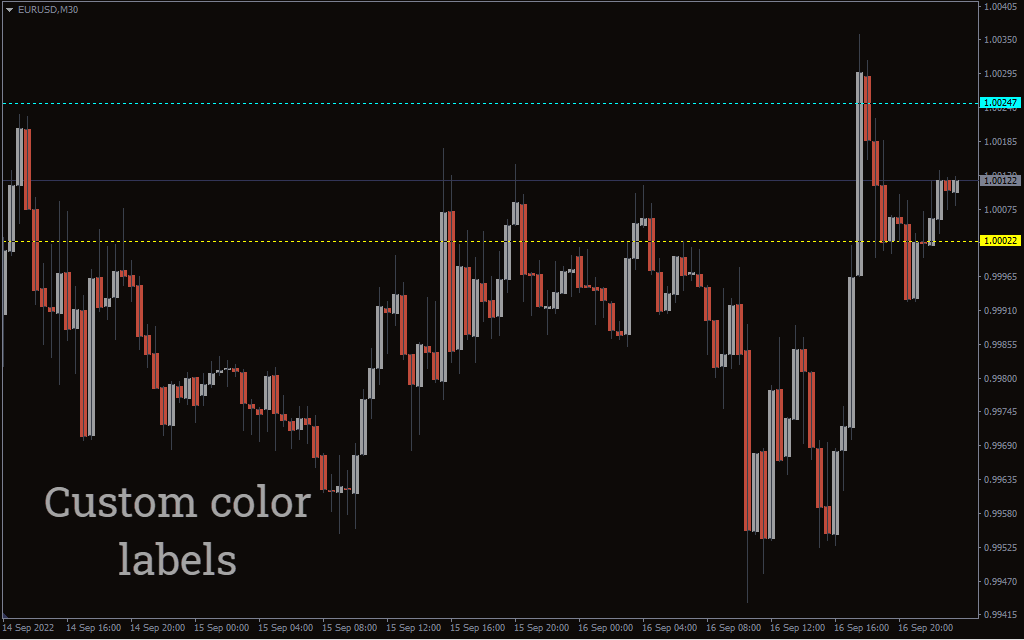 The above image depicts how the Virtual Targets indicator would look on your MT4 chart after installation.