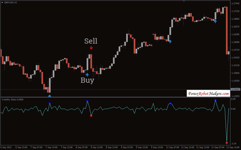 An ideal Volatility Ratio V2 indicator that gives buy and sell signals based on the average true range.