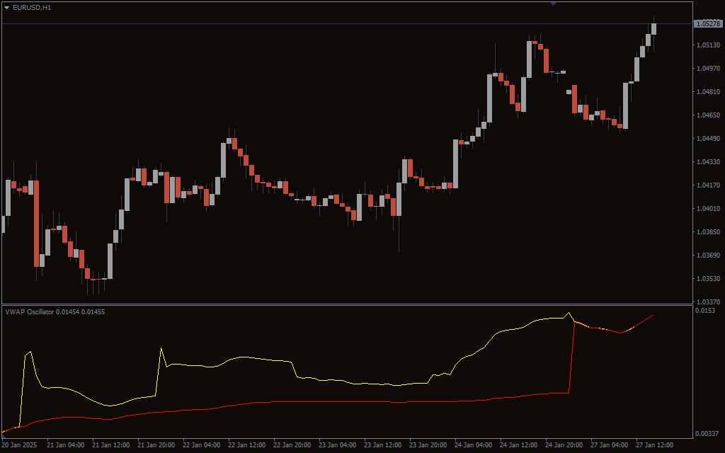 The VWAP Oscillator helps traders determine market trends and momentum shifts. When the oscillator moves above the zero line, it suggests that the price is trading above its VWAP, indicating bullish momentum and potential buying opportunities. Conversely, when the oscillator moves below zero, it signals bearish momentum, highlighting potential selling opportunities. The indicator also helps traders identify divergence between price action and VWAP trends, which can signal upcoming reversals or breakouts.