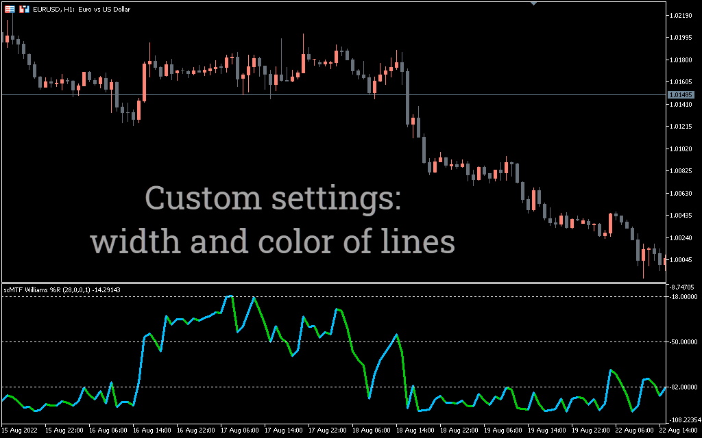 This interactive trading guide explains how to use the SC MTF Williams Percent Range Alert for MT5 to trade Forex and stocks.