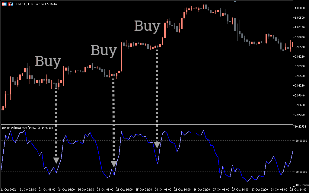 How to trade using the SC MTF Williams Percent Range for MT5 Alert